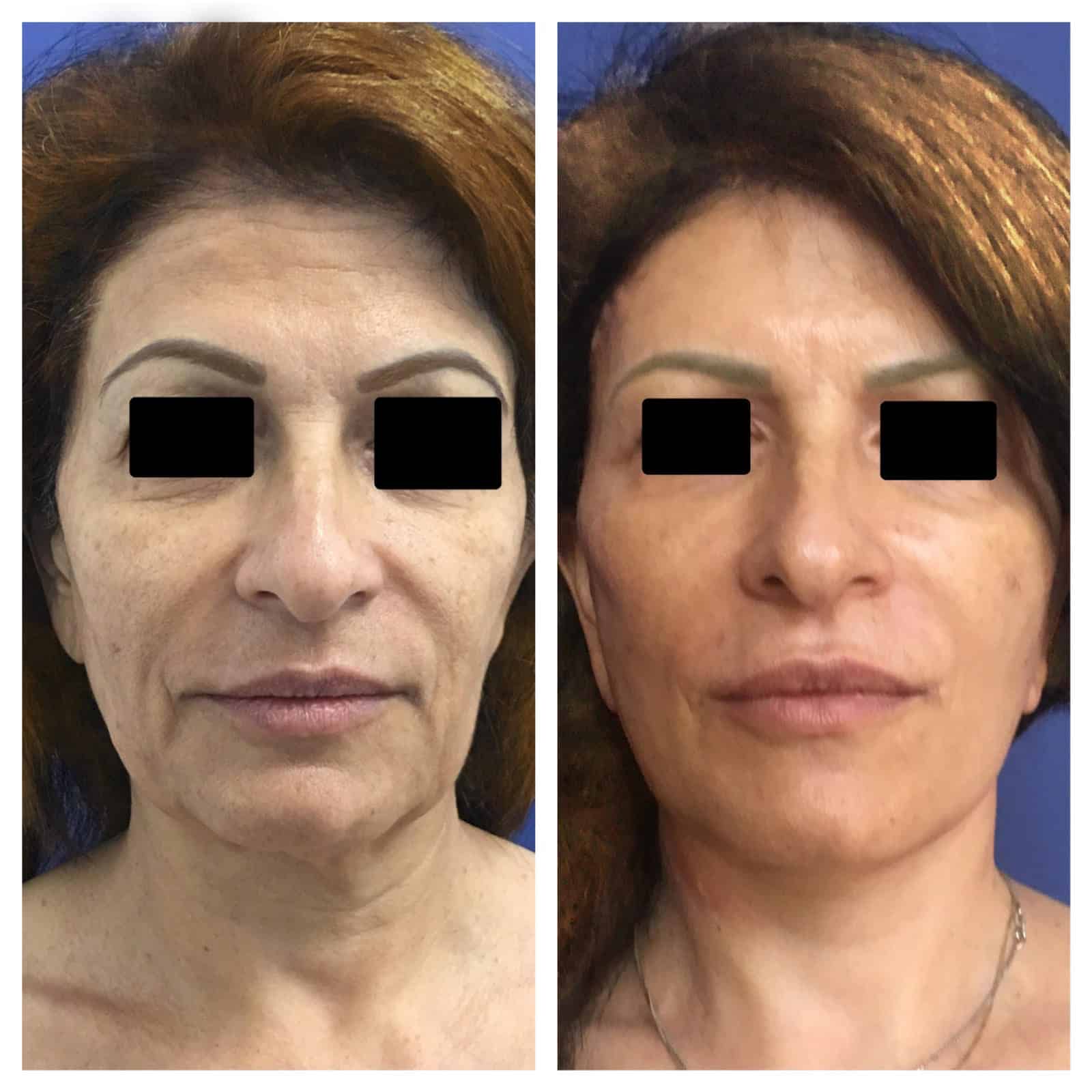 מתיחת פנים וצוואר, עם עפעפים עליונים ותחתונים, הרמת גבות, הרמת זוויות הפה, פילינג, הזרקות שומן.