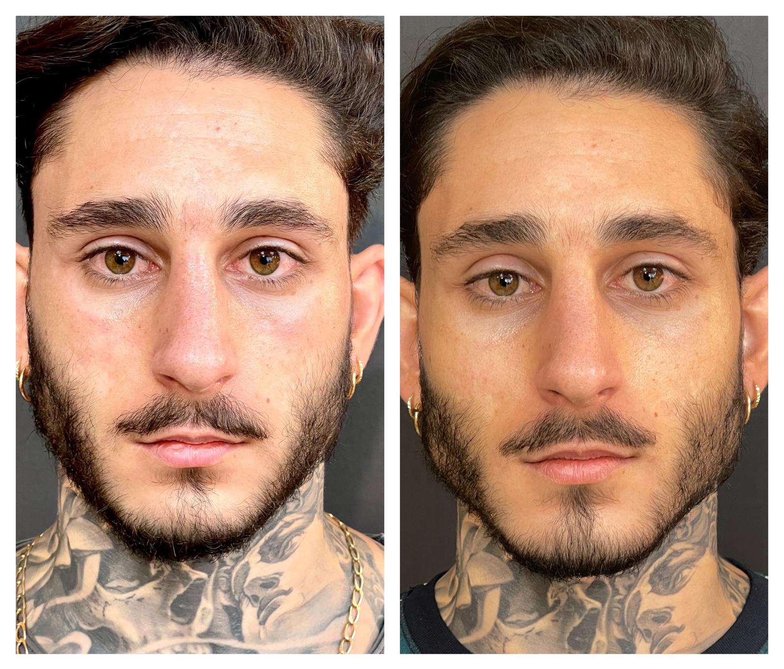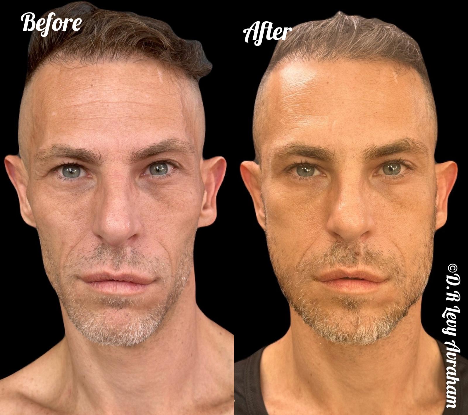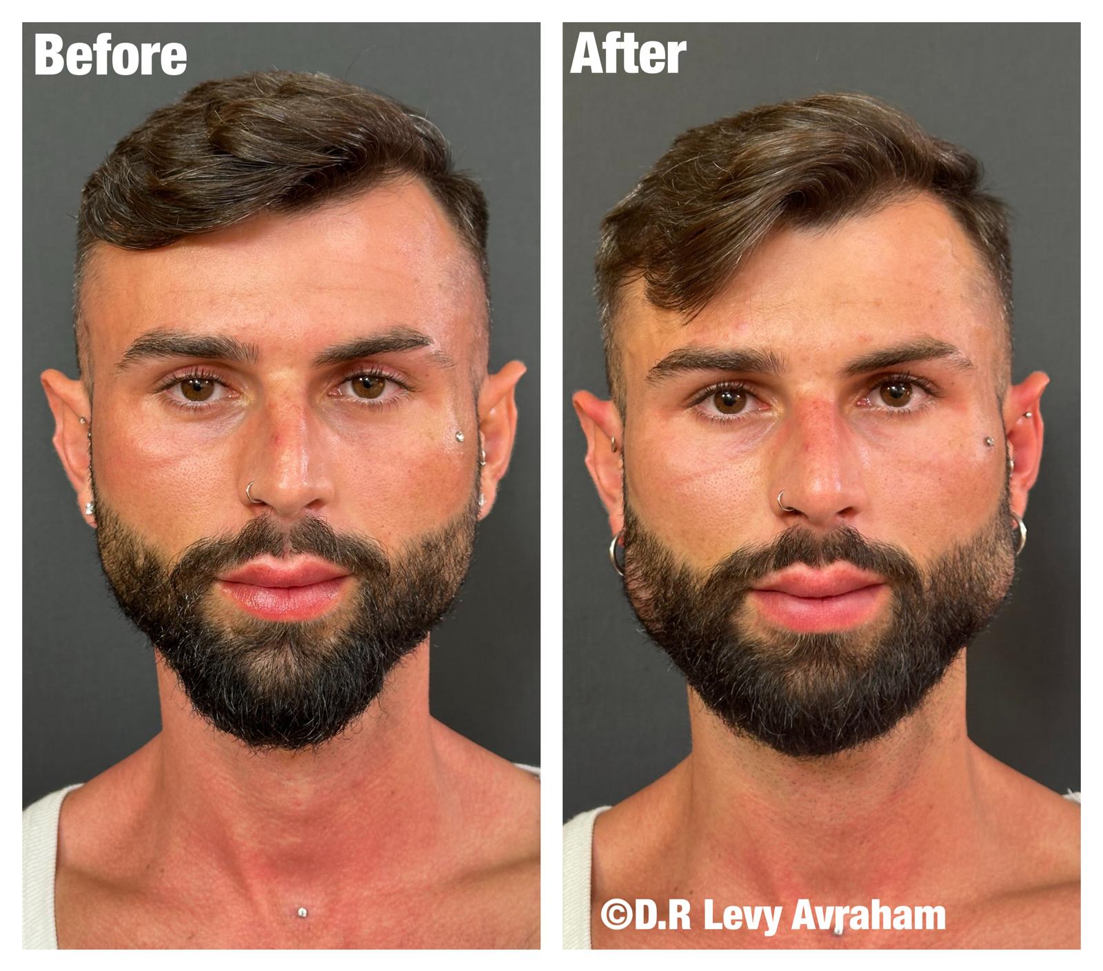 ניתן גם לטשטש את המעבר של ה”בולדוגים” והסנטר בעזרת חומרי מילוי. בתחתית הדף תמצאו מידע נוסף על עיצוב קו לסת ללא ניתוח.