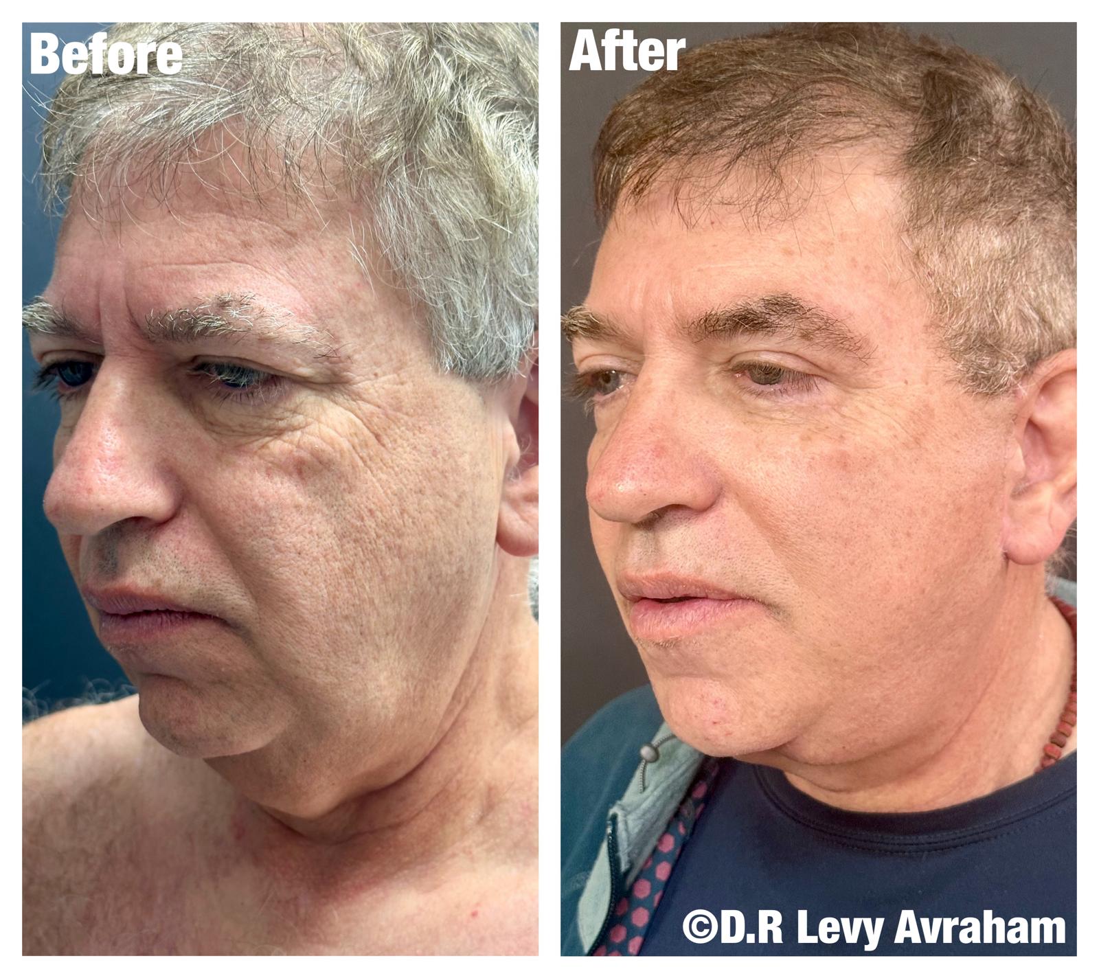 לגברים מבוגרים הרוצים למתוח חזרה את עורם ולהחזיר את המעבר החד שמתכהה, בין קו הלסת לצוואר, ניתן לבצע טיפולים שונים החל ממתיחת פנים, דרך “מיני פייסליפט”, ועד טיפול בחוטים.